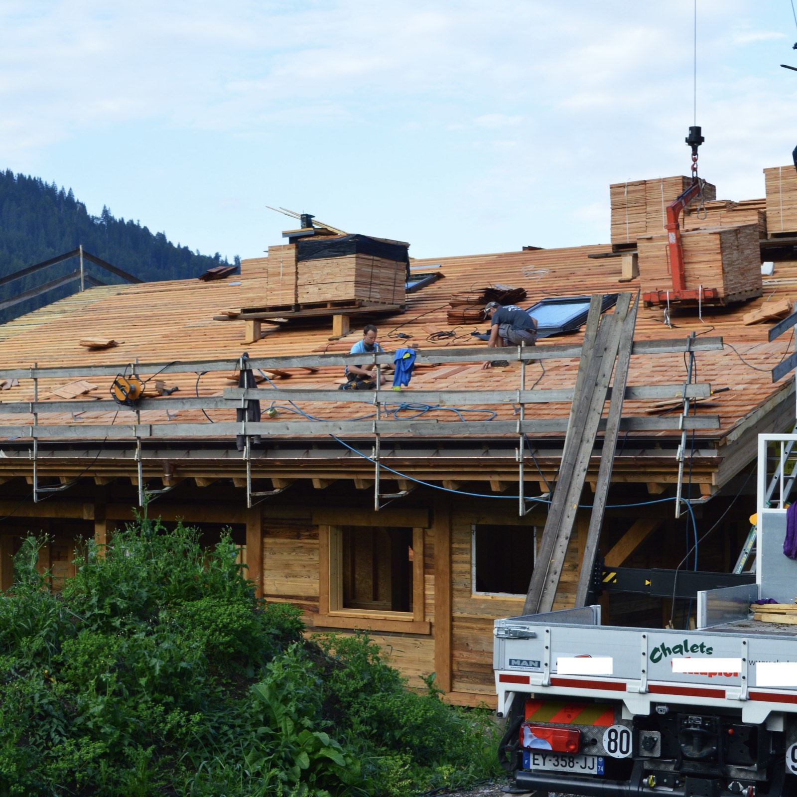 Bois séché à 15 %, bardeaux et tavaillons fabriqués en Haute-Savoie avec savoir-faire artisanal.