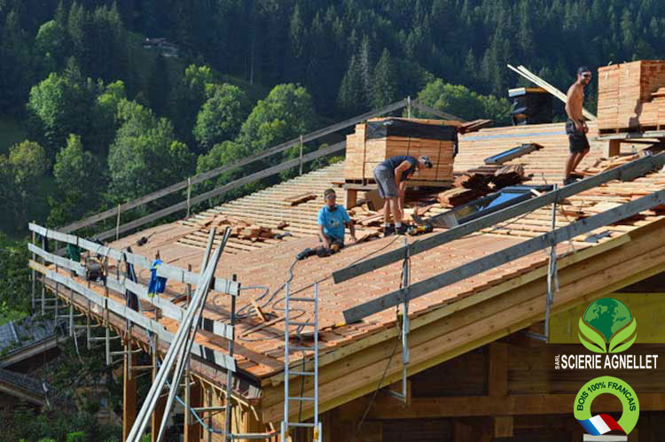 Bois séché à 15 %, bardeaux et tavaillons fabriqués en Haute-Savoie avec savoir-faire artisanal.